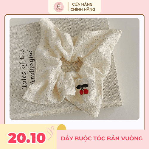 Dây buộc tóc scrunchies thiết kế bản vuông to được làm từ vải ren cotton cao cấp, mềm mại, thoáng khí, tạo cảm giác dễ chịu khi sử dụng cả ngày dài. Phần ren có họa tiết lỗ nhỏ đều đặn, mang đến vẻ đẹp cổ điển, nhẹ nhàng nhưng không kém phần hiện đại. Thiết kế kiểu khăn buộc dạng nơ bản lớn, giúp mái tóc trông dày và bồng bềnh hơn, đồng thời tạo điểm nhấn nổi bật cho tổng thể diện mạo.