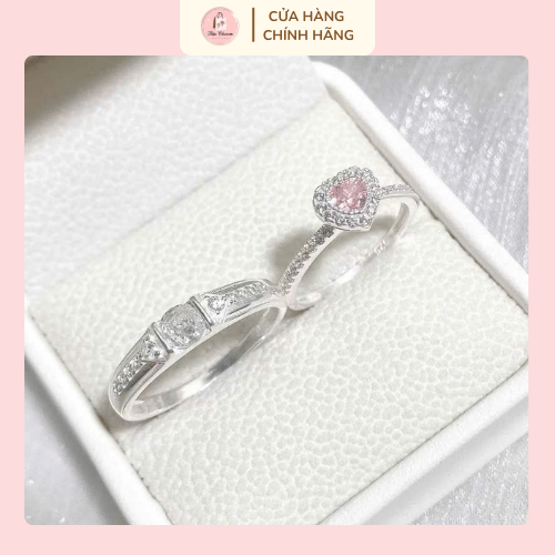 - Nhẫn Nữ Tinh Tế: Thường có thiết kế cầu kỳ hơn với đá chủ (như viên đá hồng hình trái tim trong ảnh) được bao quanh bởi một vòng đá nhỏ (thiết kế Halo) hoặc đai nhẫn mảnh, tôn lên vẻ nữ tính, dịu dàng.